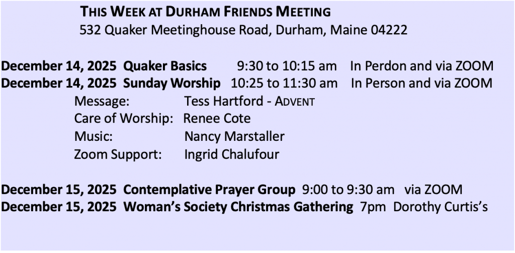 Those coming to the Meetinghouse should particularly note the Meetinghouse Use Guidelines.