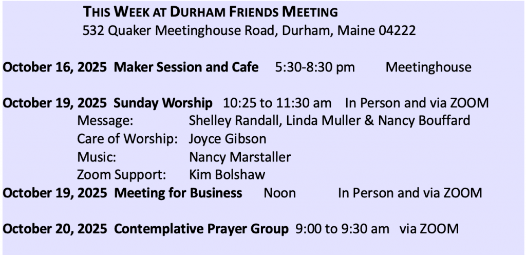 Durham Friends Meeting Events Calendar