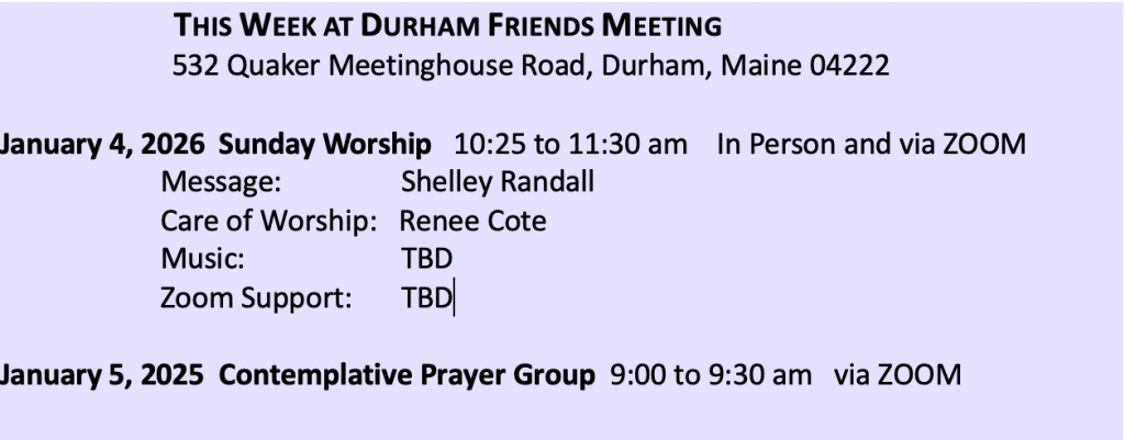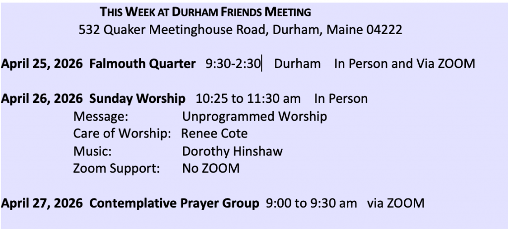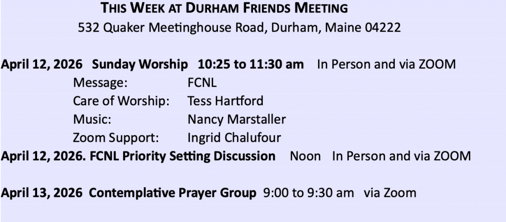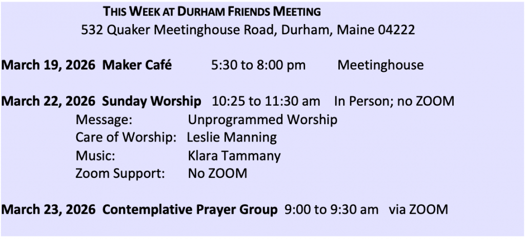 Durham Friends Meeting Events Calendar