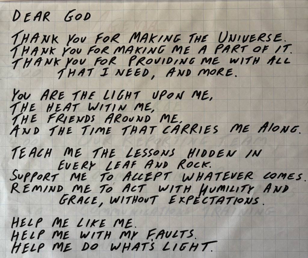 “My Prayer, Updated,” by Craig Freshley Posted on February 15, 2026 by Doug For the February 15, 2026 message at Durham Friends Meeting, Craig Freshley presented a new version of the prayer he has written and re-written, uses regularly in his life. Her asked, What is your prayer? Please follow and like us: Share this: Print (Opens in new window) Print Share on Facebook (Opens in new window) Facebook